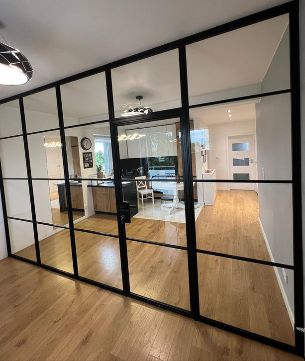 Loft steel door, produced according to custom dimensions (for indoor use), is a perfect solution as a transitional door for single- or multifamily buildings or public buildings. Their non-standard and minimalistic design perfectly fit both modern and more classic interiors.